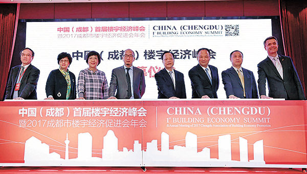 劉漢元主席與行業領導、嘉賓共同啟動峰會四川省商務廳副廳長楊春軒致辭表示,發展樓宇經濟是打造現代服務業體系的重要載體,是促進“平面經濟”向“立體經濟”轉變的重要抓手。成都作為中國率先將商業商務建筑載體上升到樓宇經濟進行研究、推進和服務的城市,在樓宇經濟工作上擁有眾多的創新和探索。希望成都市樓宇經濟部門和促進協會再接再厲,繼續主動作為、創新思路,在強化企業服務、推動行業交流、組織人才培訓,搭建產業招商對接平臺,開展數據研究,推動樓宇經濟標準化建設,宣傳成都營商環境等方面積極開展工作,不斷增強行業凝聚力和影響力,讓商務樓宇經濟成為成都乃至四川經濟發展的新名片。