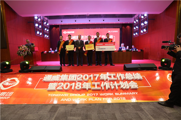 在通威集團2017年工作總結暨2018年工作計劃會上,集團年度表彰獎項——“通威集團董事局主席特別嘉獎”、“2017通威集團年度英雄團隊”、“2017通威文化建設十大標桿分、子公司”、“2017年通威集團年度榜樣”、“通威股份年度新銳獎”等獎項逐一揭曉。據悉,本次年度表彰,通威頒出了總計近百個獎項,年度獎勵總額超過了1.7億。如此大手筆重獎員工,再次彰顯了通威集團作為中國最優秀民營企業代表的雄厚實力和強勁發展勢頭!
