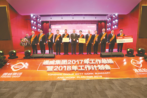 2017年,在全球經濟逐步復蘇、國內經濟穩中向好的宏觀背景下,全體通威人深入貫徹劉主席“揚長砍短、戰略聚焦”八字方針,在挑戰與機遇中主動出擊、順勢而為、乘勢而上,直面市場競爭,高效整合資源要素,創新發展,重點突破,精誠團結,取得了舉世矚目輝煌成績,贏得了行業內外的廣泛尊重,向打造“三個世界級龍頭”的宏偉目標又邁進了一大步