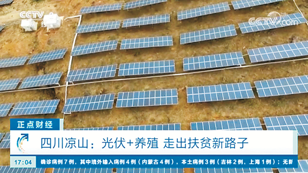 5月18日,CCTV-2央視財經頻道《正點財經》欄目聚焦通威四川喜德縣農光牧光一體光伏扶貧電站項目,深度解析光伏與農牧協調發展、光伏與扶貧事業共同發展,帶動當地脫貧致富奔小康,探索出“光伏+養殖”的扶貧新門路。