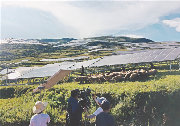 四川電視臺攝制組拍攝通威喜德縣農光目光一體光伏扶貧電站項目