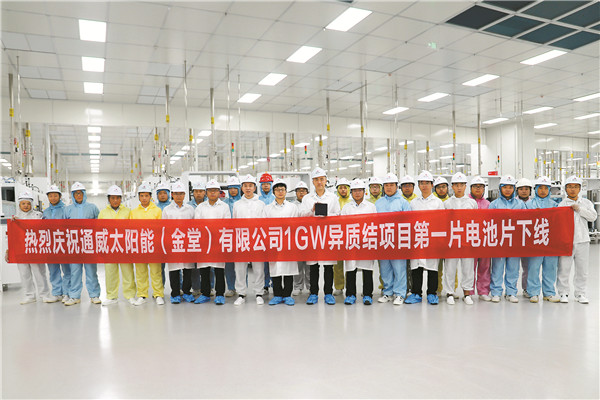 通威太陽能1GW異質結電池項目第一片電池片下線