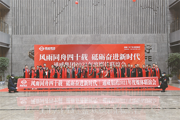 11月26日,“風雨同舟四十載 砥礪奮進新時代”通威集團2021年度媒體聯誼會成功舉行。新華社、中新社、人民網、經濟日報、光明日報、中華工商時報、每日經濟新聞、中國質量報、中國經營報、21世紀經濟報道、金融投資報、第一財經、四川日報、四川省工商聯宣教處、成都高新區新聞中心等中央、省、市近40家主流媒體領導、資深記者共聚通威。十一屆全國政協常委、全國人大代表、通威集團董事局劉漢元主席出席并與大家現場交流,集團副總裁黃其剛全程參加,并帶領媒體朋友們參觀集團體驗中心及通威太陽能金堂基地。