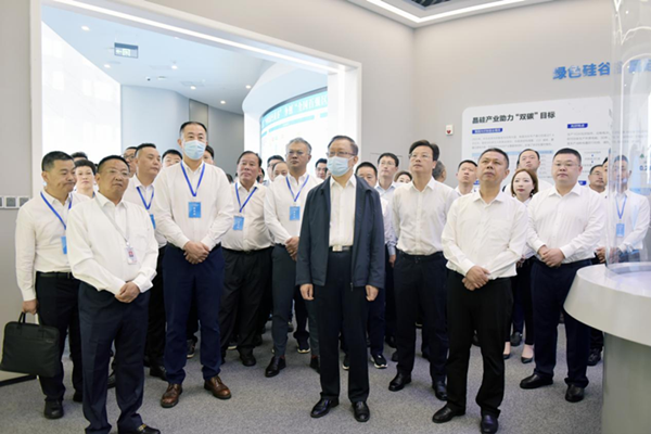 會議期間,全國人大常委會副委員長、民建中央主席、中華職業教育社理事長郝明金,全國政協常委、提案委副主任、民建中央副主席李世杰等民建中央領導一行蒞臨永祥股份參觀調研,全國人大代表、全國工商聯副主席、通威集團董事局劉漢元主席,通威股份副總裁、永祥股份總經理李斌,永祥股份戰略發展總監丁曉科熱情接待。