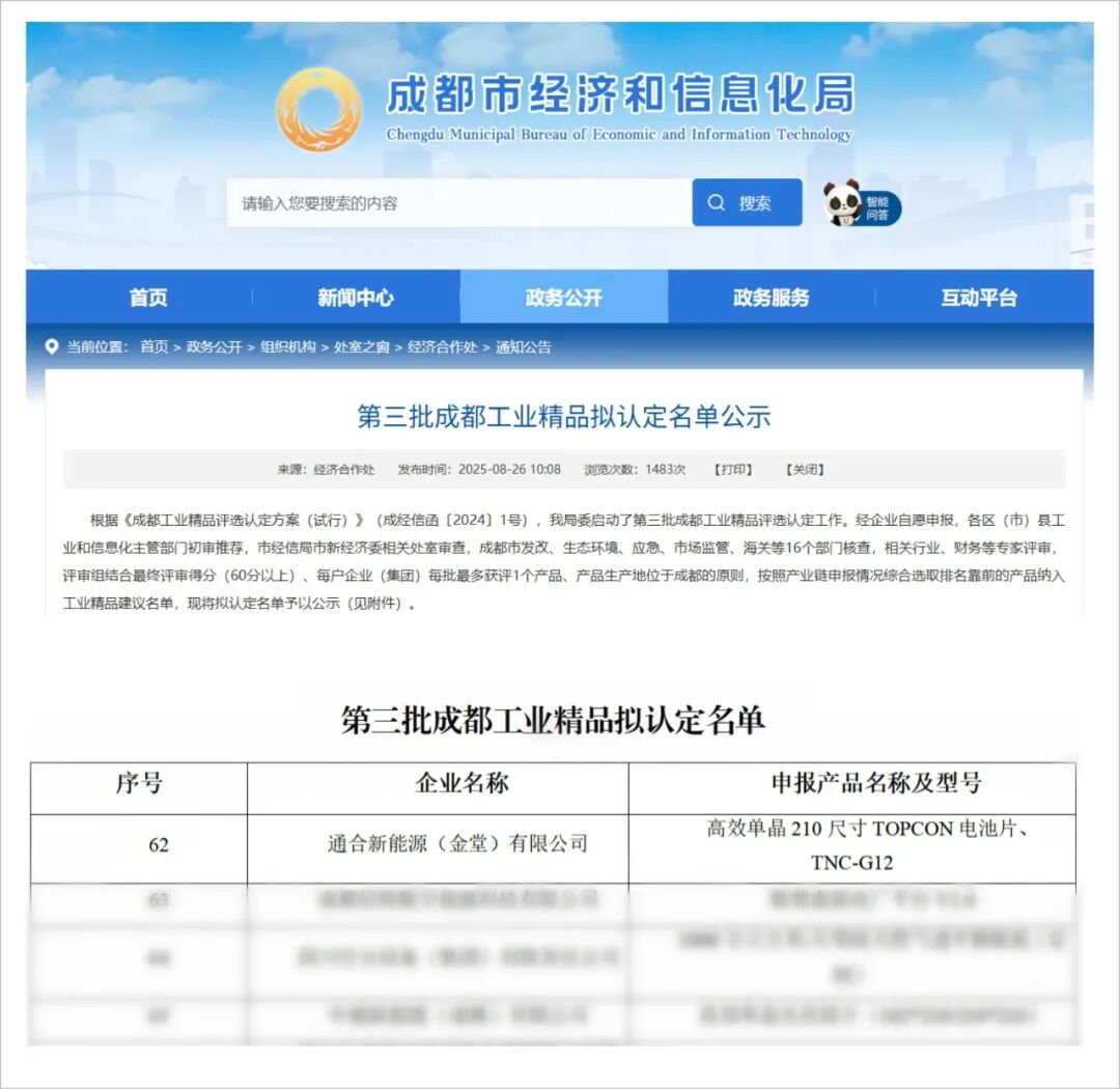 中威新能源(成都)有限公司 榮列“第三批成都工業(yè)精品”認定名單