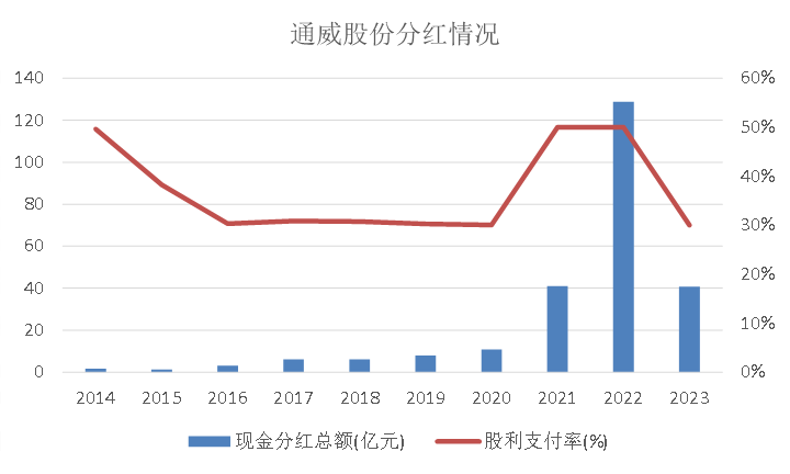 圖:通威股份分紅位居A股上市公司前列;資料來源:公司公告