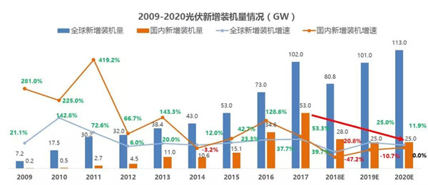 5月19日,習總書記在全國生態(tài)環(huán)保大會上堅定而明確地強調(diào),要全面實施綠色發(fā)展,培育壯大節(jié)能環(huán)保產(chǎn)業(yè)、清潔生產(chǎn)產(chǎn)業(yè)和清潔能源產(chǎn)業(yè)。在此背景下,對連續(xù)五年全球新增裝機第一的光伏產(chǎn)業(yè),卻突然將發(fā)展規(guī)模從2017年的53GW斷崖式削減到2018年的30GW,削減幅度高達40%以上,并可能造成50%以上的行業(yè)優(yōu)質(zhì)產(chǎn)能閑置,全球光伏產(chǎn)業(yè)亦將因此出現(xiàn)20%以上的負增長。
